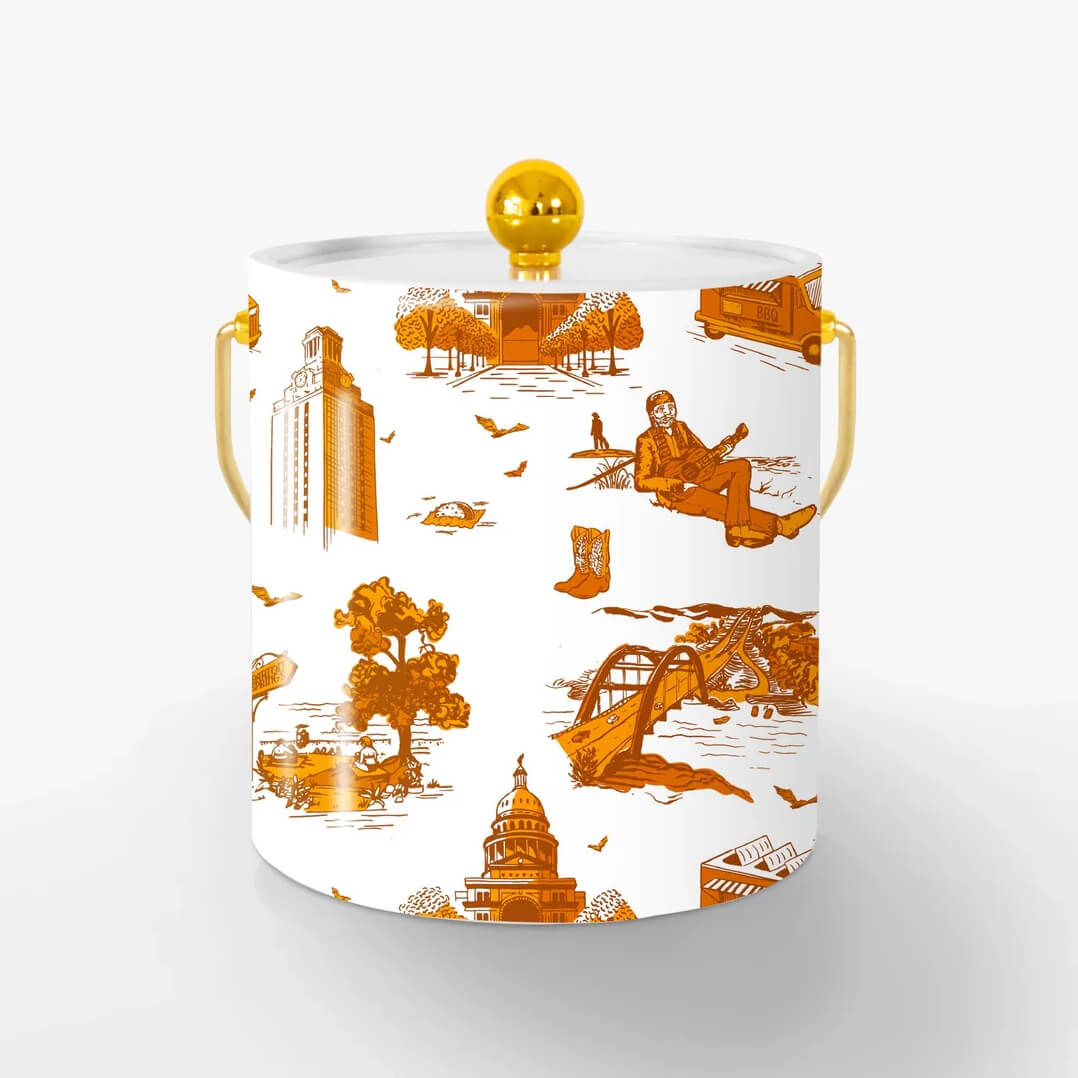 Katie Kime: Ice Bucket | This hand-illustrated print captures Austin’s charm. Perfect for keeping your drinks cool at tailgates with our 3-quart insulated ice bucket.