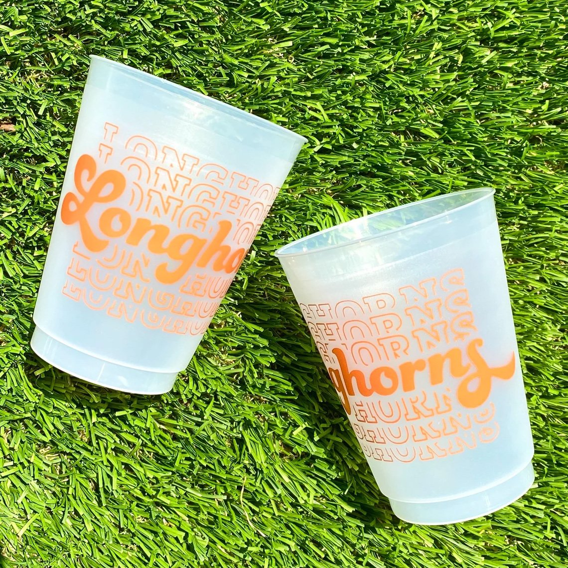 Elizabeth + Mae: Longhorns Cups | From cups to napkins to plates, these game-day goodies are the perfect addition to your at-home tailgate.