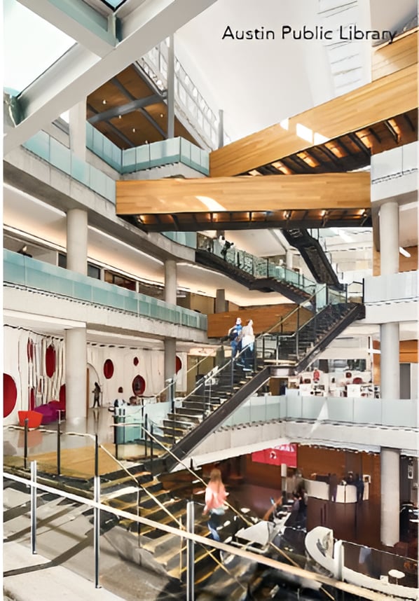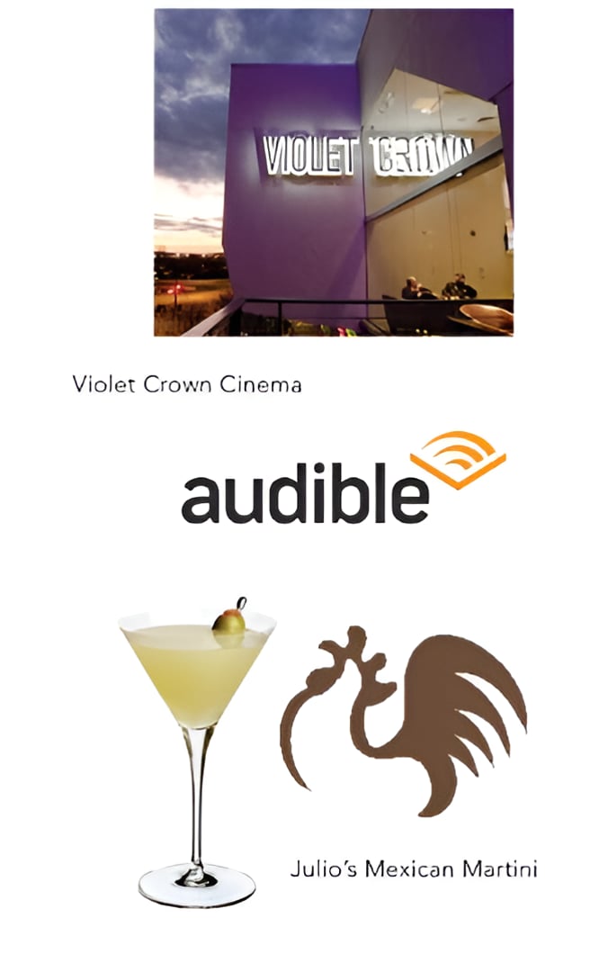 My Fun Italian Chandelier, Outdoor Voices Pants, the Austin Public Library, The Violet Crown, and The Fish Counter at Whole Foods.
