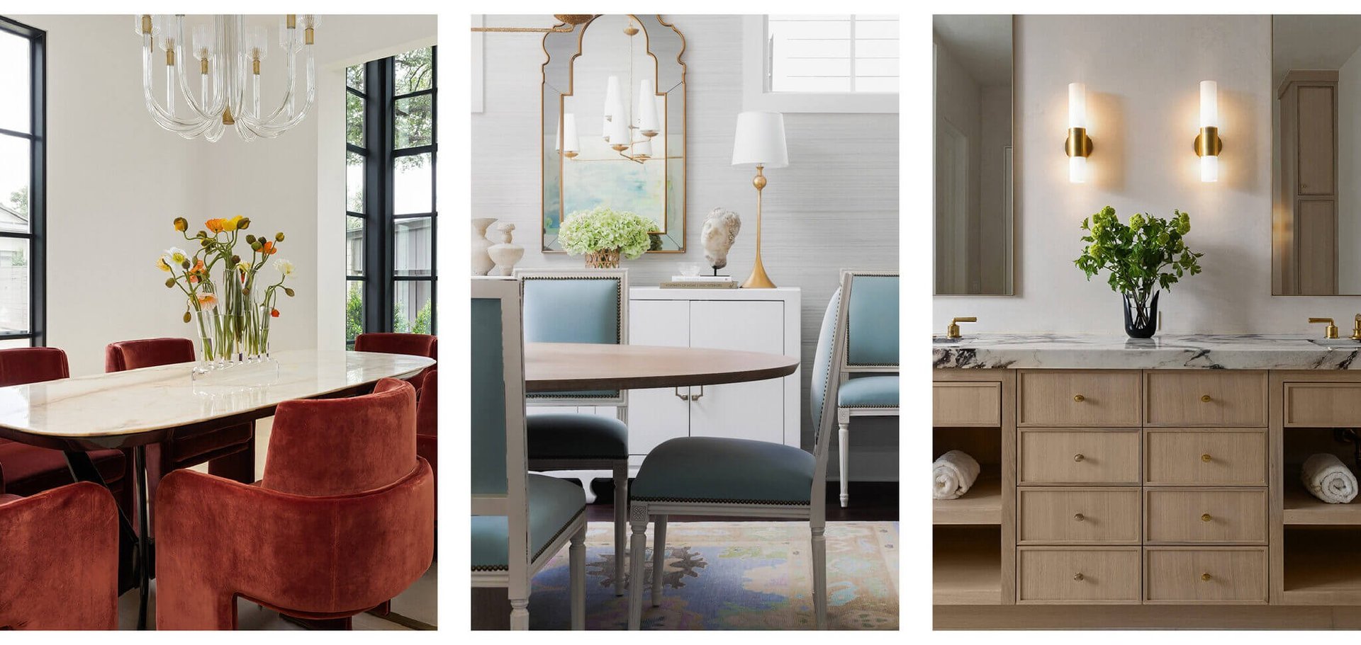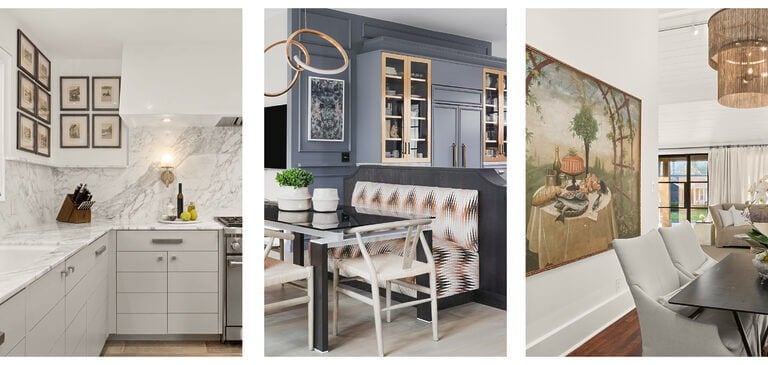 Add warmth and visual interest by displaying paintings and prints in unexpected places like the kitchen or powder room. Some of our favorite local artists include Diana Greenberg, Tyler Guinn, and Ysabel LeMay.